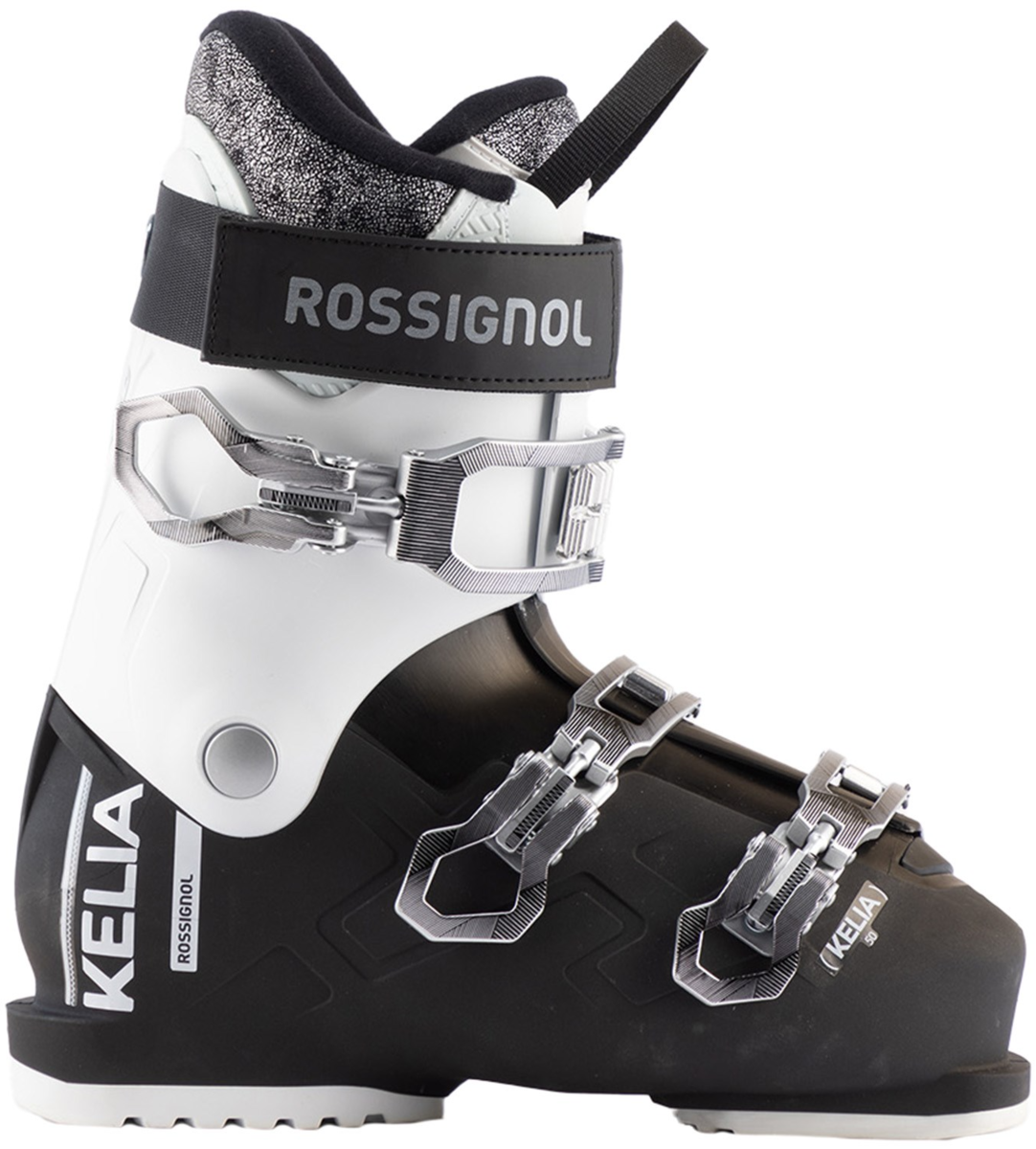 Comfort and control. Beginner skiers get the best of both worlds in the Kelia 50. The women's-specific generous 104mm last addresses all of the common problem fit areas, providing an accommodating instep and more comfortable ankle area. The result is increased circulation, warmth, and carving comfort on the mountain. A three-buckle shell delivers confident control, while the customizable liner enhances comfort.